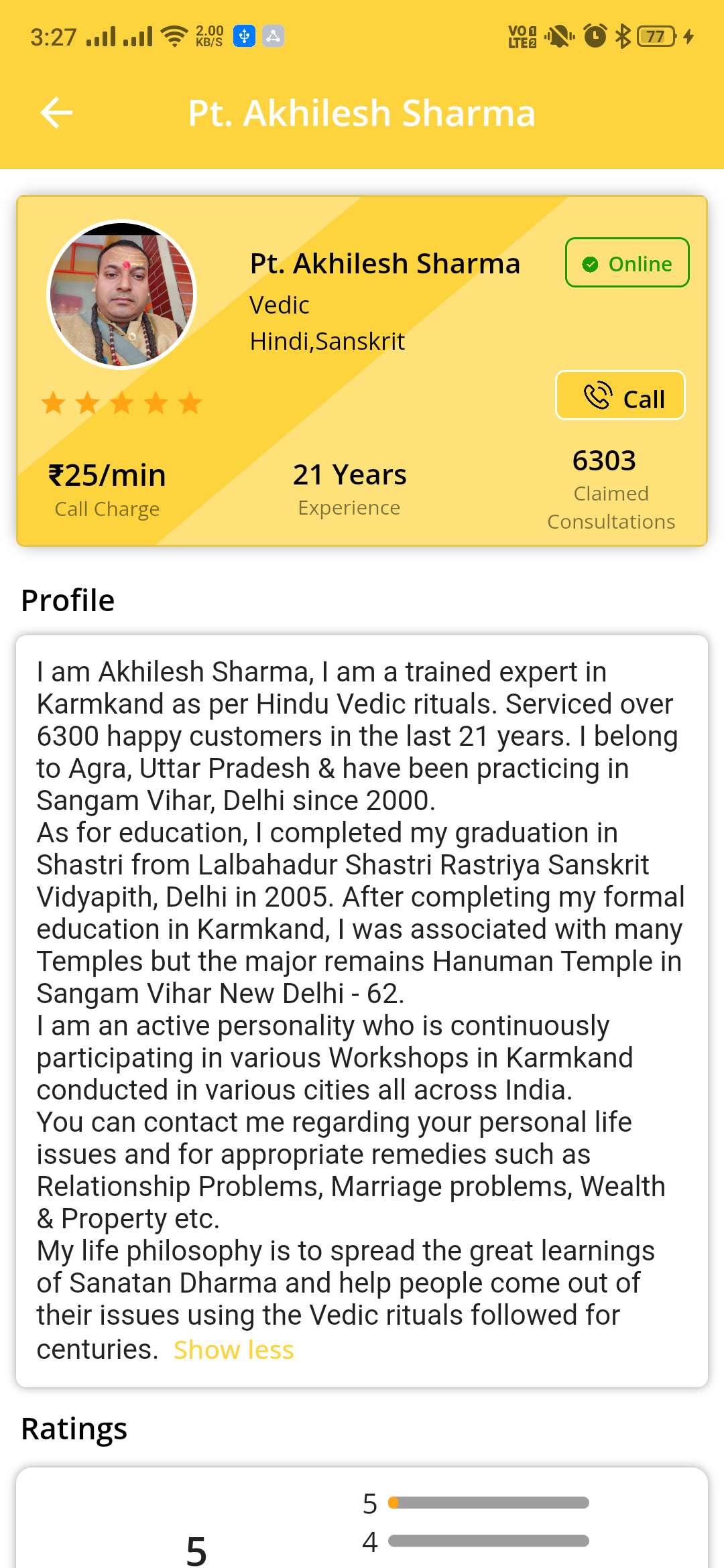 With an extensive network of over 5000 Vedic astrologers, Tarot readers, Numerologists, Vastu experts, and more, Astrotalk enables you to effortlessly connect with these experts via both calls and chat, offering solutions to all your queries.